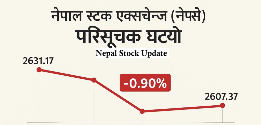 नेपाल स्टक एक्सचेन्ज (नेप्से) परिसूचक यो साता करिब १ प्रतिशत घटेर बन्द भएको छ। गत साता २६३१.१७ विन्दुमा बन्द भएको नेप्से, यस साता ०.९० प्रतिशत अर्थात २३.८० अंक घट्दै २६०७.३७ विन्दुमा झरेको हो। पाँच कारोबार दिन खुलेको बजारमा एक दिन मात्र परिसूचक बढेको थियो भने बाँकी चार दिन घटेको थियो।